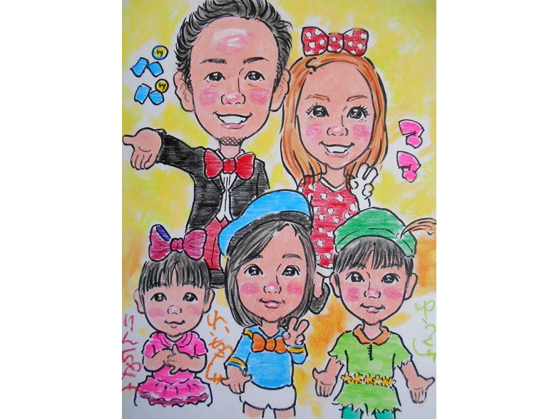 なりきり化キッズ似顔絵、なりきり化家族のイメージです。