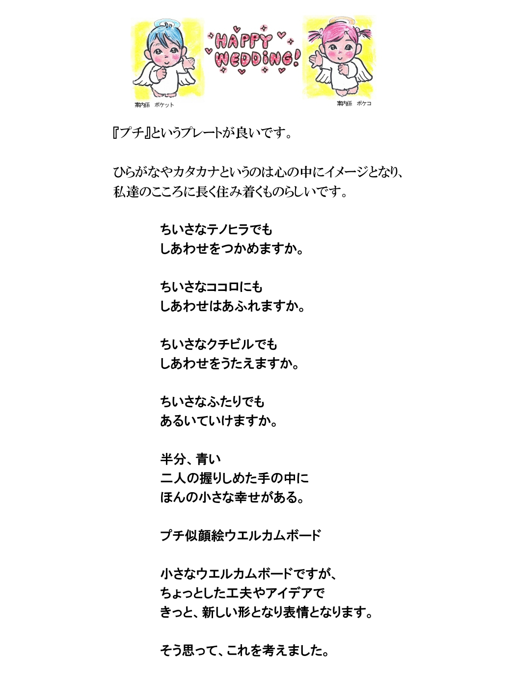 私には、プチ似顔絵ウエルカムボードのような小さな感覚が多く受け入れて貰えたら良いなという願いがあります。