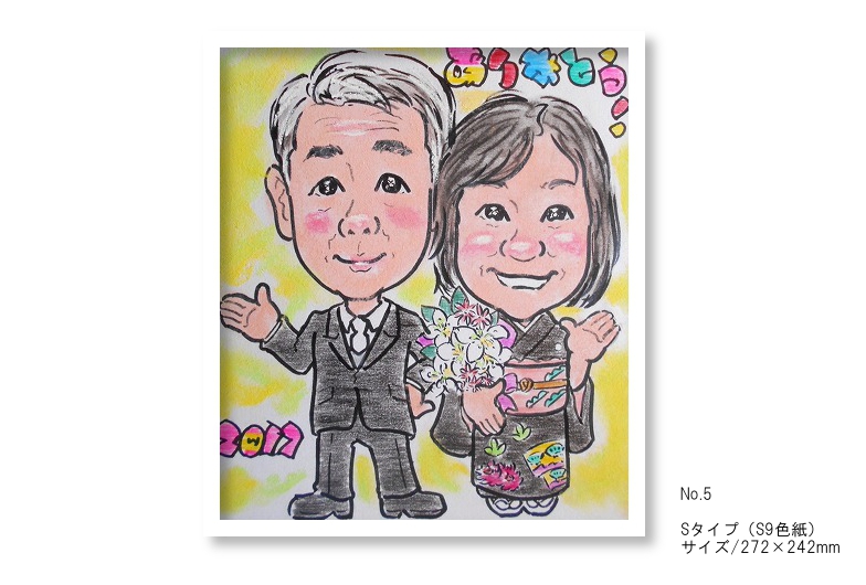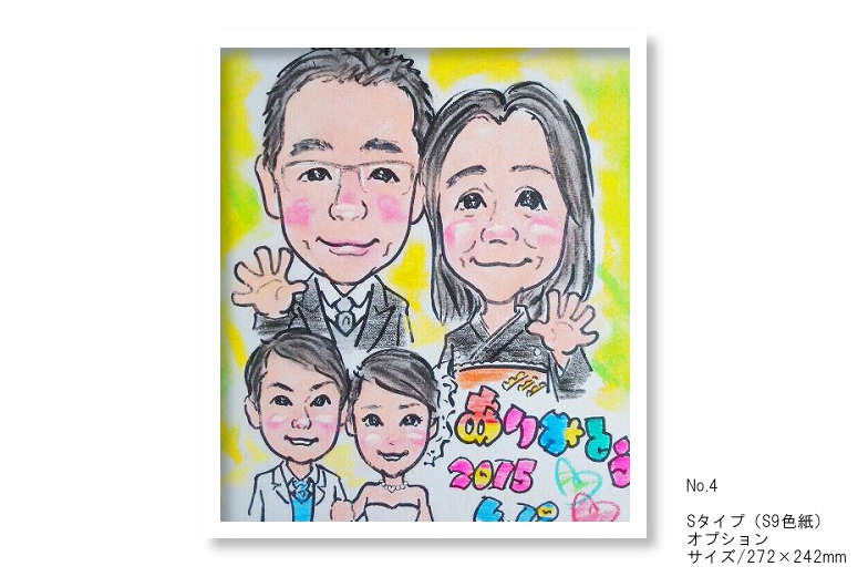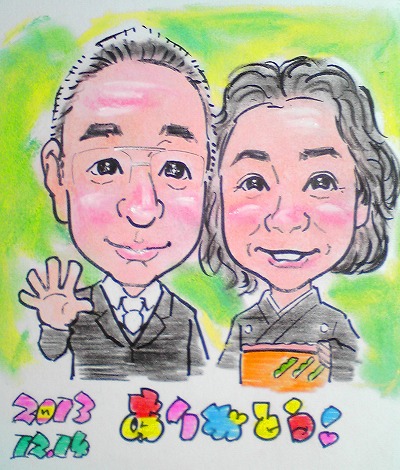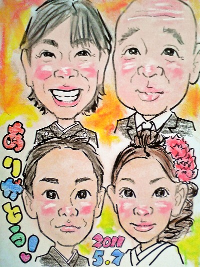 こうした機会に、ご両親の似顔絵を描いたものを贈る。